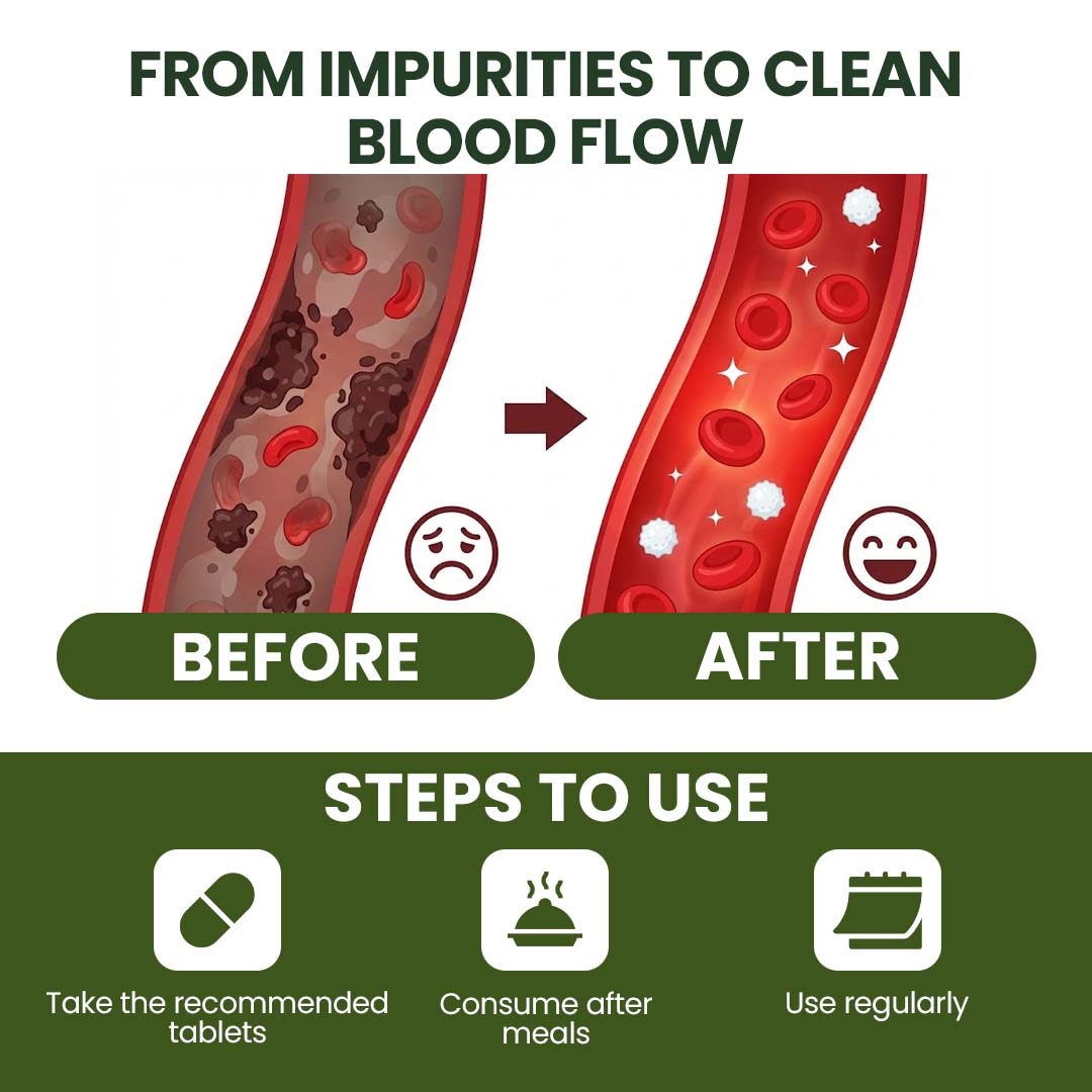 Triphala (Amla, Haritaki, Bibhitaki): This classic Ayurvedic trio gently cleanses and detoxifies the digestive system, paving the way for better nutrient absorption and elimination of toxins that can affect blood purity.