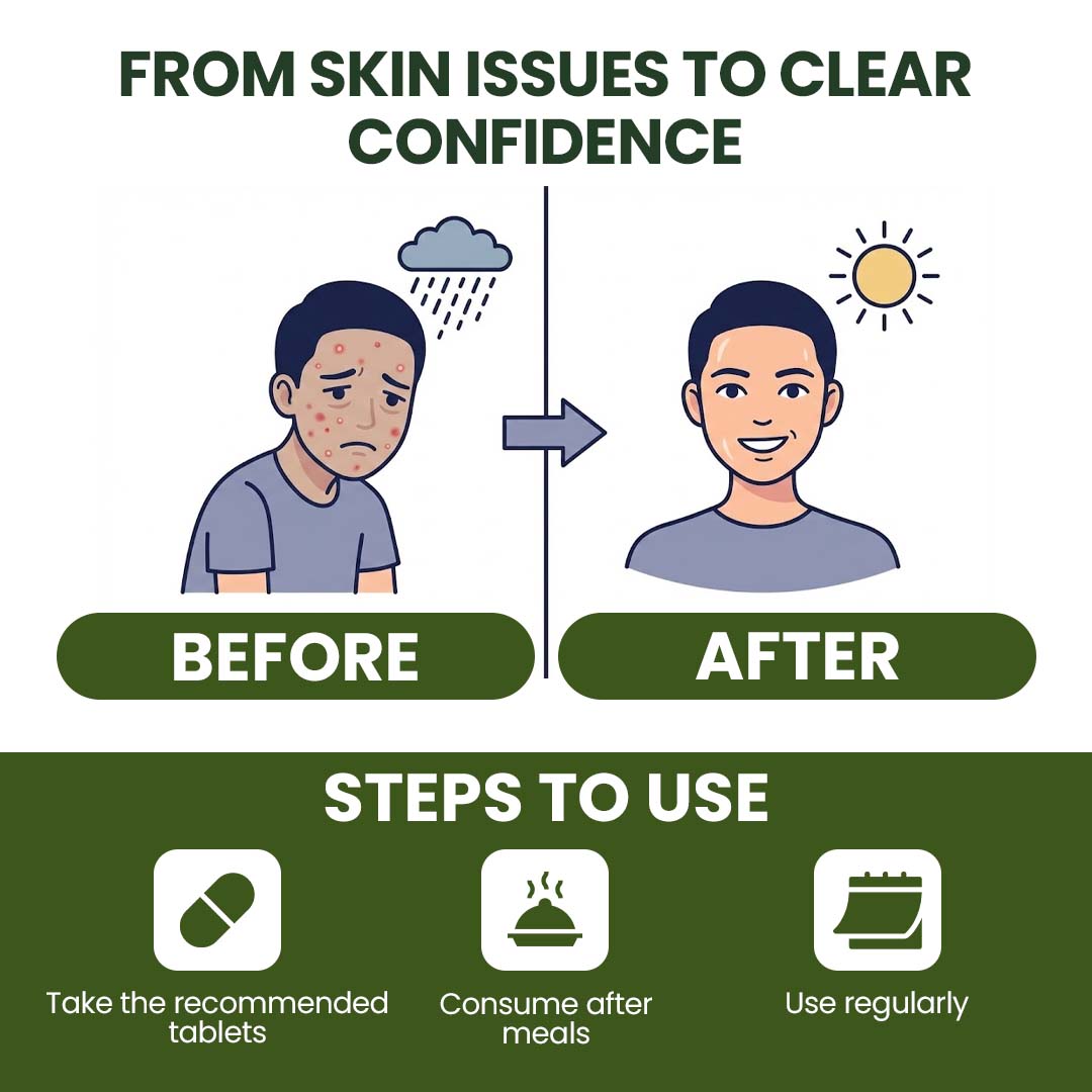 Nimba (Azadirachta indica - Neem): The undisputed king of Ayurvedic skin herbs, Nimba is celebrated for its unparalleled extensive spectrum of properties, including powerful antibacterial, antiviral, antifungal, antiparasitic, and anti-inflammatory actions. Nimba rigorously purifies the blood, eliminates deeply rooted toxins, and is extraordinarily effective in managing virtually all types of skin infections, acne, eczema, psoriasis, and scabies. Its bitter taste also aids in metabolic cleansing and reducing Kapha and Pitta imbalances.