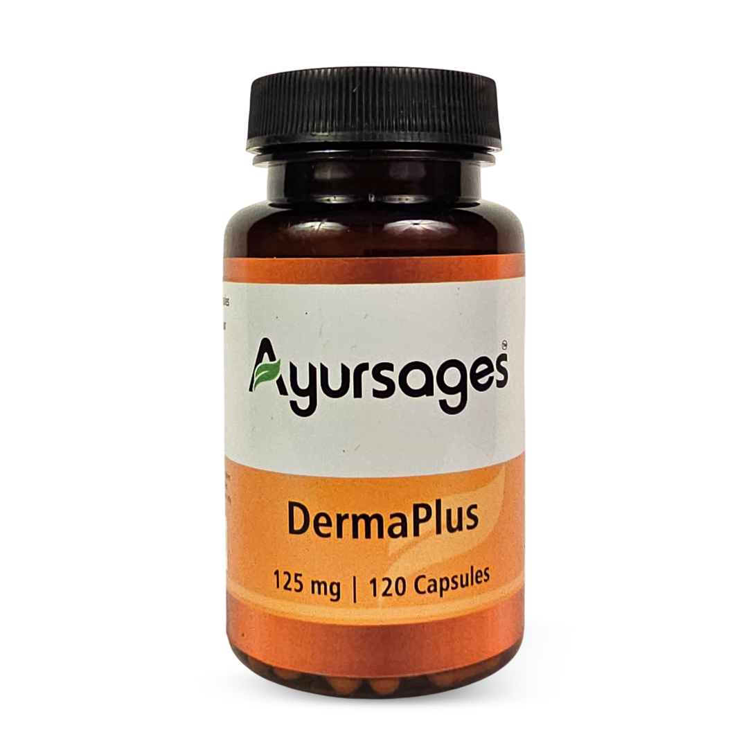 Lauha Bhasma (Calcined Iron): A highly bioavailable form of iron, Lauha Bhasma is a potent blood purifier and tonic. It not only enriches the blood, improving its quality and oxygen-carrying capacity, but also aids in neutralising toxins and supporting the body's vital organs, particularly the liver, which plays a crucial role in skin health. It helps improve the quality of blood, essential for healthy skin, and supports the body's natural defence mechanisms. It also contributes to vitality and strength, aiding in the recovery from debilitating skin conditions.