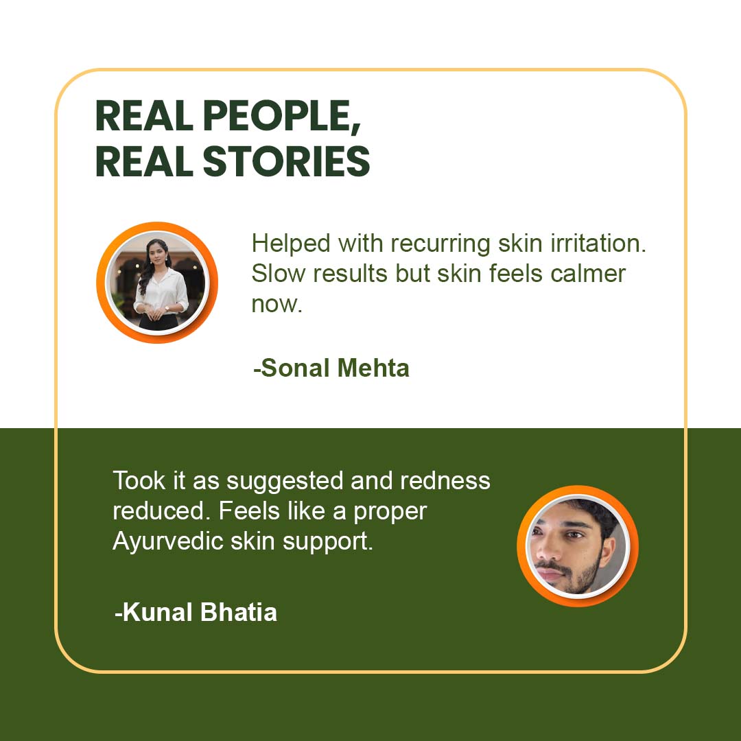Bhavana with Kumari Swarasa (Fresh Aloe Vera Juice): The intricate process of "Bhavana" (trituration/impregnation) with the fresh juice of Kumari (Aloe Vera) significantly potentiates the entire formulation. Aloe Vera itself is a cooling, healing, and anti-inflammatory agent. This special preparation ensures that the potent ingredients are more deeply absorbed and their therapeutic effects are maximised, providing enhanced soothing, purifying, and healing benefits to the skin from within.