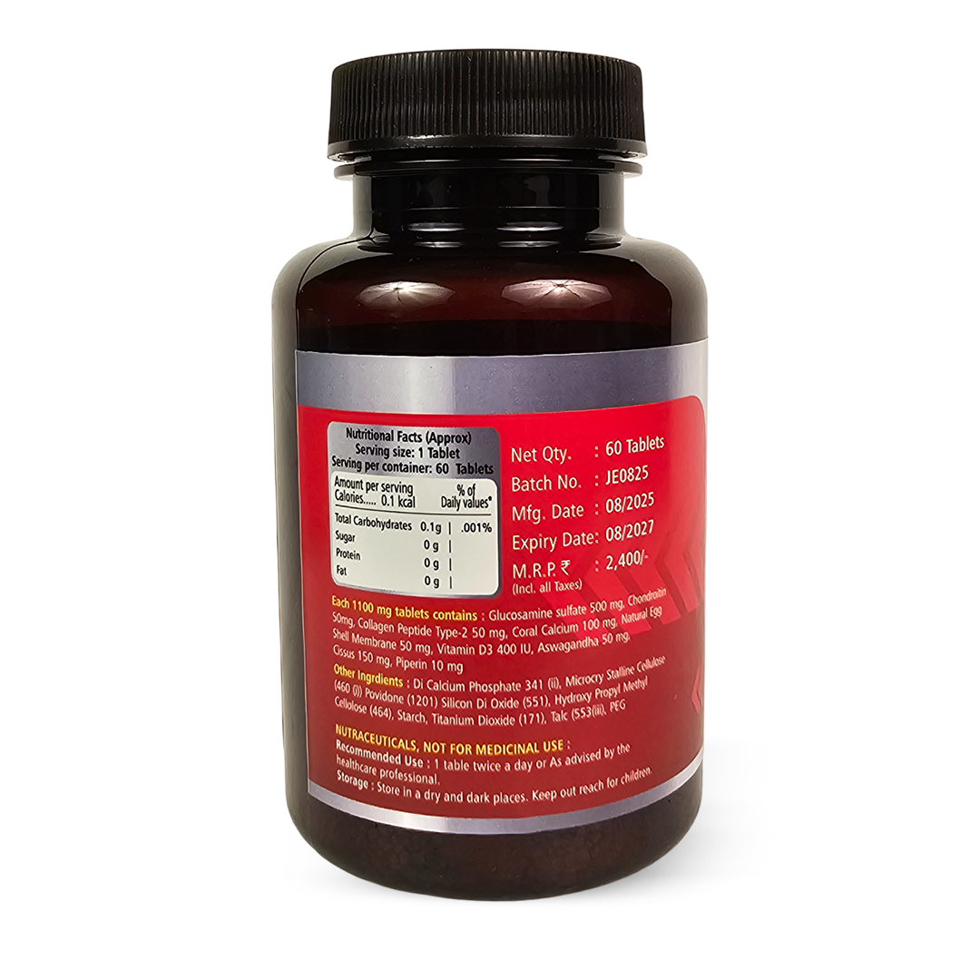 • Ayursages Joint Elan is a unique formulation carefully crafted to provide comprehensive support for joint health, flexibility, and comfort. Designed for individuals seeking to maintain active lifestyles, recover from joint stress, or simply enhance their overall musculoskeletal well-being, each 1100mg tablet combines scientifically researched ingredients with potent botanical extracts.