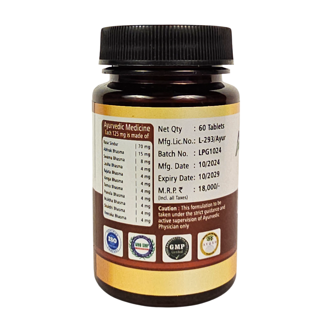 Rasa Sindhur (Purified Mercurial Compound): A classic mercurial preparation traditionally used to enhance metabolic processes, support detoxification pathways, and strengthen liver functions.